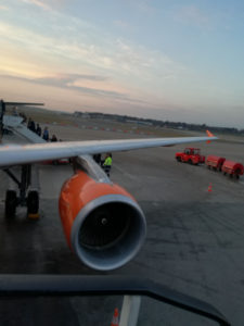 Die Ankunft mit dem Bus in Hamburg war pünktlich. 20 Minuten später saßen wir bereits in der S-Bahn zum Flughafen. Am Checkin Schalter macht man uns bereits darauf Aufmerksam das nur die ersten 30 Passagiere ihr Handgepäck in den Flieger mit nehmen dürfen. Wegen Mangel an Transportbussen hebt Easyjet mit 30 Minuten Verspätung ab. An Bord gab es nicht genügend Platz für das Handgepäck. So durften einige Passagiere ihr Handgepäck beim Lademeister vorn abgeben. Wir sitzen ganze vorne und dürfen zuschauen wie genervte Reisegenossen ihr Gepäck vorne abgeben.